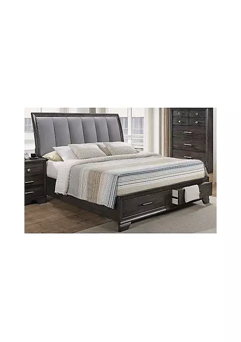 - Additional Pieces Available: Dresser (B65801) Mirror (B65811) Nightstand (B65802) Chest (B65804), Transitional style | Rich Grey Finish | Upholstered Bed with Storage Drawers | Full Extension Glide Drawers | Scratch Resistant Finish | Simple