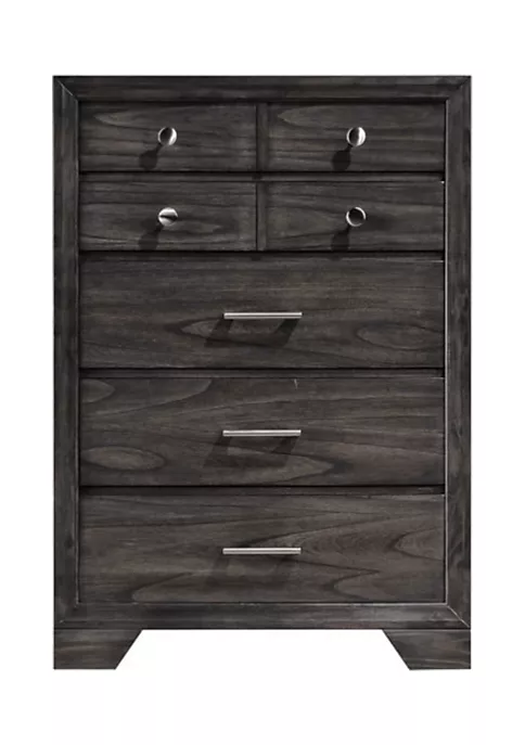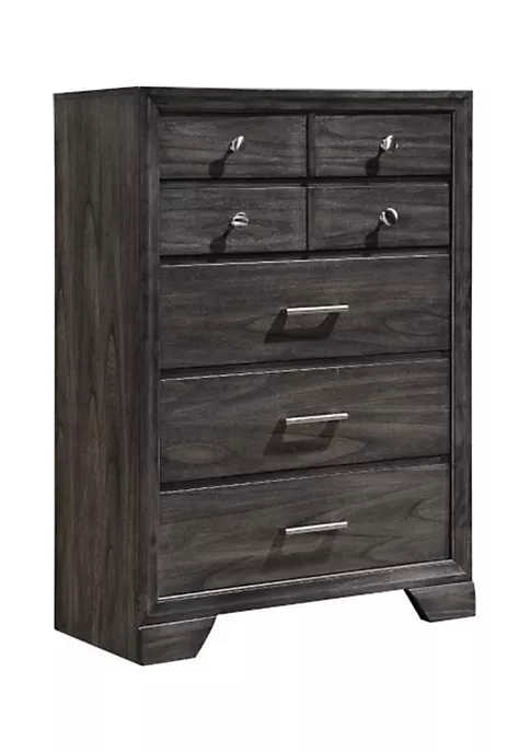 Up top, our chest provides loads of surface space for framed photos, decor, and more. Inside? It has tons of storage space for clothing and throw blankets courtesy of its numerous, full extension glide drawers. Not only does its rich gray finish add to this piece’s versatility, but it’s also scratch resistant, making it well suited to homes with kids, pets, or both. The final touch? Simple, modern hardware.