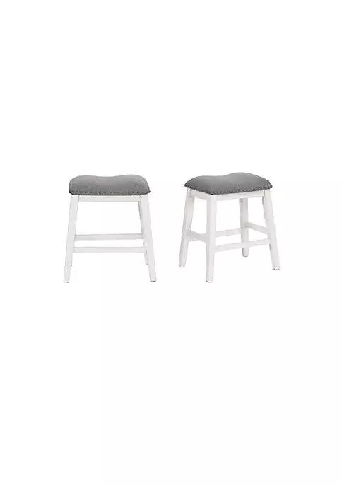 DescriptionOur Dilan CounterHeight Stool is always pleased to seat you. Flaunting an elegant design that mixes contemporary charm with timeless details, this chic seat lets you eat, entertain, or gather together in style. The only question is: How big will your crowd be?Featuring a shaped, upholstered seat, Dilan offers plenty of comfort. And it’s crafted of acacia and rubberwood with sturdy, tapered legs and bottom stretchers for added stability. The final details? A pristine white finish and nailhead trim, granting this cozy piece extra sophistication.Integrated Lumbar SupportNailhead trim Contemporary style Integrated Lumbar SupportNailhead trim Contemporary style Strong wood construction Bottom stretchers for stability