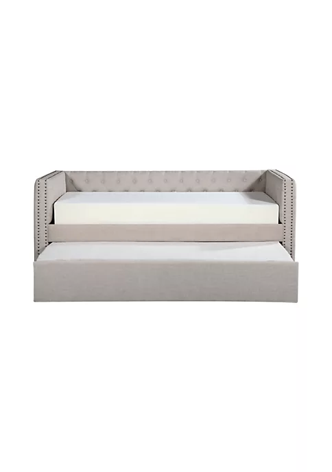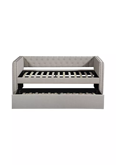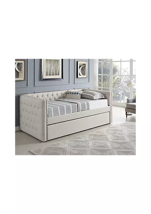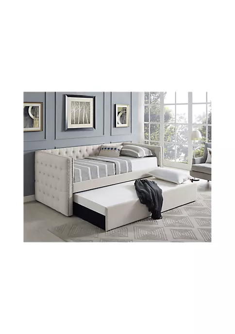 - Nailhead trim Button-tufting | Clean lines | Space-saving design | Twin Size Mattress Sold Separately | Trundle on casters for flexibility