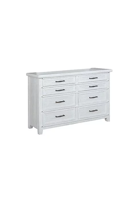 DescriptionHome on the range gets a cozy makeover with the modern farmhouse look of our Lakeland Dresser. Crafted of acacia and oak veneer with a lightly distressed white tone, this bedroom essential is inviting and ohso charming. Plus, it’s incredibly practical. Lakeland features French dovetail front and English dovetail back drawers, resulting in timehonored integrity. There’s loads of room for clothes, blankets, and more inside its drawers, which boast Kenlin glides for effortless access to your wardrobe. Up top? A generous amount of space to display your favorite photos and decor. Exposed screw details add the final rustic hint. Mix a few or all of the matching pieces in this collection to create your dream sleep space.Strong wood construction French dovetail front, English dovetail back drawers Modern farmhouse style Exposed screw details Kenlin drawer glide
