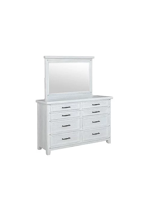 DescriptionHome on the range gets a cozy makeover with the modern farmhouse look of our Lakeland Mirror. Crafted of acacia and oak veneer with a lightly distressed white tone, this bedroom essential is inviting and ohso charming. Plus, it’s incredibly practical. Lakeland features a casual, approachable look, but also offers the ideal spot to check your outfit before work or hair before you go out at night. Exposed screw details add the final rustic hint. Mix a few or all of the matching pieces in this collection to create your dream sleep space.Strong wood construction Modern farmhouse styleExposed screw details