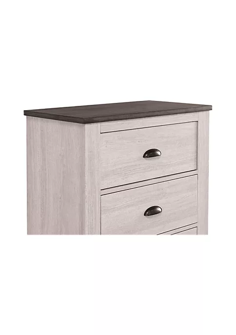- Two spacious drawers | French dovetail drawer construction | Metal cup pulls | Plenty of surface space | Bracket feet | Modern farmhouse style