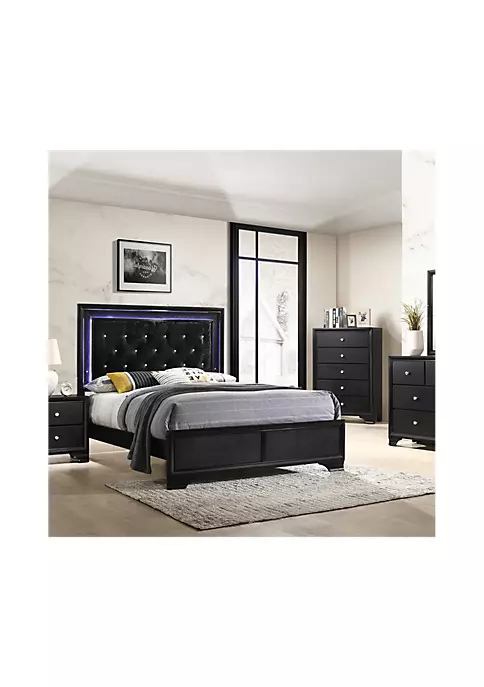 - Glam design in a sleek black finish | Dovetail drawers with metal center runners | Decorative crystal-like knobs | Crocodile embossing