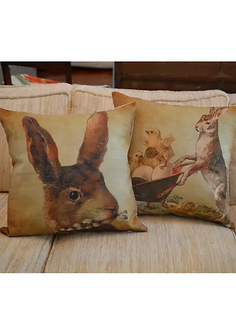 Brown rabbit with pussy willow throw pillow cover