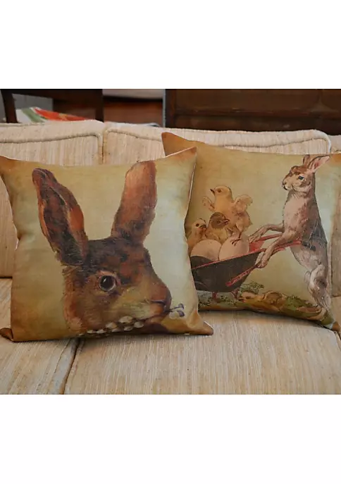 Green and yellow bunny rabbit throw pillow cover