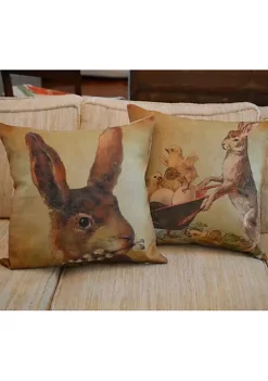 Brown bunnies with floral accents throw pillow cover
