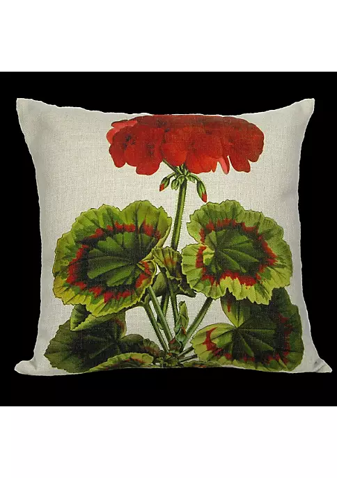 Green and red geranium flower designed throw pillow cover