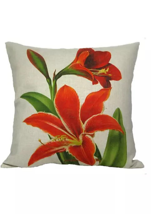 Antique botanical image of a red and orange tropical amaryllis flower and leaves