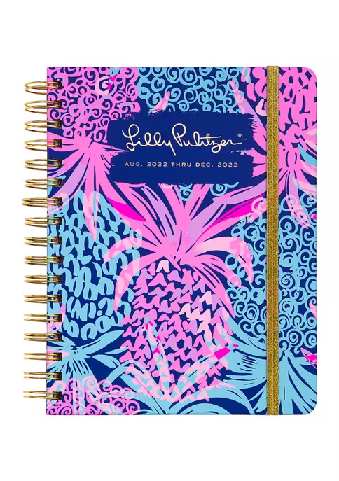 Keep your social schedule in order (and in style) with Lilly Pulitzer’s jumbo 17-month planner. This essential organization tool features a durable hardcover, weekly spreads with room for daily planning, monthly calendars, colorful stickers, and notes pages. Plus, it’s complete with all the favorite features including a gold elastic band closure and spirals, printed pockets, laminated tabs, and a new page of stickers inspired by custom Lilly artwork. Whether for school or your personal life, this pretty planner will safeguard your plans from August 2022 through December 2023!