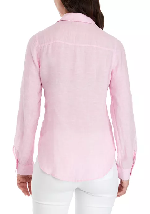 The Sea View Linen Button Down Top is a wardrobe staple. Pair this long sleeve linen button down shirt with printed shorts for a casual look or dress it up with an elegant white pant. The breathable lightweight linen fabric makes it a perfect sunny-weather staple, while the button front lets you control the temperature.