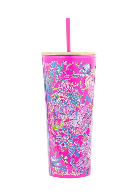 Sip in style with this 24-ounce acrylic printed tumbler. Made of BPA-free plastic and fashioned with the latest Lilly print, a luxe gold lid, and a reusable straw, this insulated tumbler is fit for sipping with Lilly Pulitzer herself!
