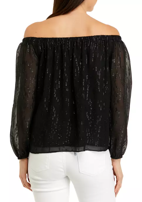 - Long off-the-shoulder sleeves